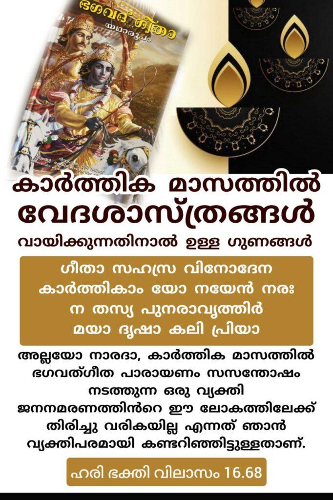 Festival / ഉത്സവങ്ങൾ (Posters) കാർത്തികമാസമാഹാത്മ്യങ്ങൾ suddhabhakti 06/10/2025 1 min read About The Author suddhabhakti See author's posts Post navigation Previous: കാർത്തിക മാസത്തിലെ ഭക്തിസേവനംNext: ദീപാവലിയുടെ പ്രാധാന്യം Leave a Reply Cancel replyYour email address will not be published. Required fields are marked *Comment * Name * Email * Website Save my name, email, and website in this browser for the next time I comment.