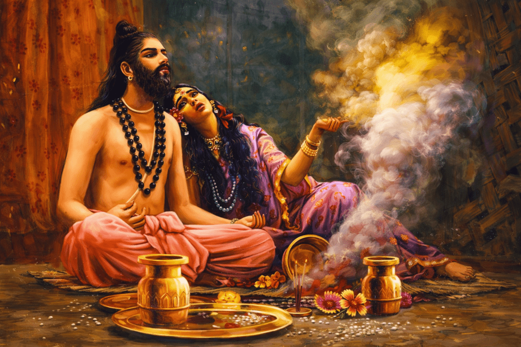 ഒരിക്കൽ സന്ധ്യാസമയത്ത് മരീചിപുത്രനായ കശ്യപമഹർഷി അഗ്നിഹോത്രത്തിൽ ഏർപ്പെട്ടിരിക്കുകയായിരുന്നു. ആ സമയം അദ്ദേഹത്തിന്റെ പത്നിയായ ദിതി കാമവിവശയായി ഭർത്താവിനെ സമീപിച്ചു. യാതൊരു ഭാവഹാവാദികളും കൂടാതെ അവൾ തന്റെ ആഗ്രഹം തുറന്നുപറഞ്ഞു: “മഹാത്മാവേ, ഒരു ആന വാഴയെ എന്നപോലെ കാമദേവൻ എന്നെ തന്റെ ശരങ്ങളാൽ പീഡിപ്പിക്കുന്നു. എന്റെ സഹോദരിമാർക്കുള്ളതുപോലെ എനിക്കും പുത്രന്മാരുണ്ടാകാൻ അങ്ങ് എന്നിൽ പ്രസാദിക്കണം.”